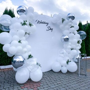 6. Играйте с геометрией: добавьте цветочные композиции и другие элементы, чтобы дополнить фон церемонии.