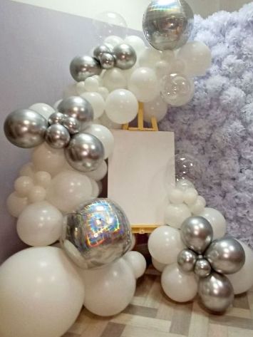 У нас есть самые разные материалы, такие как воздушные шары, ткань, декоративные и живые цветы, световые гирлянды и много другое